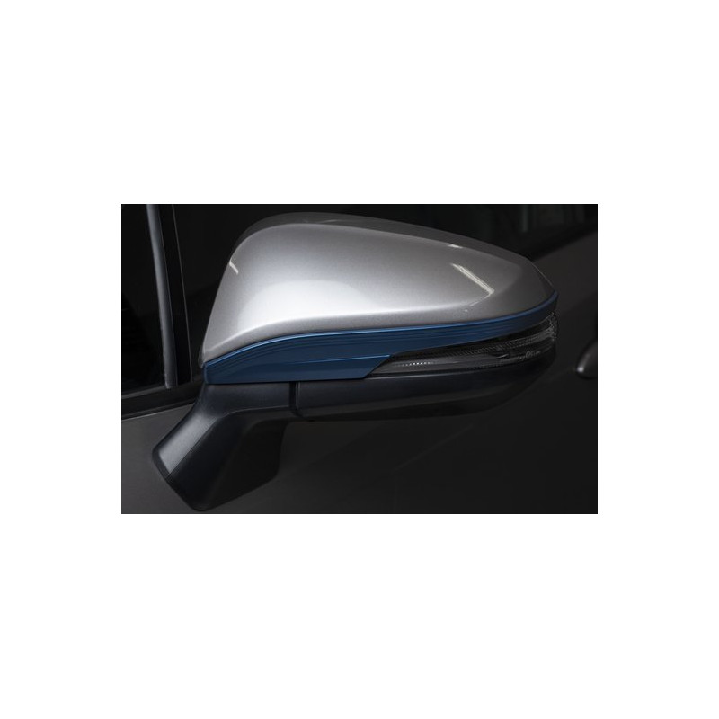 Dale a tu Corolla Cross una actualización sofisticada con este cobertor azul para el espejo lateral. Fabricado por Toyota con altos estándares de calidad, resalta la línea híbrida del vehículo y suma un atractivo visual moderno sin alterar la zona original del espejo. Su encaje es perfecto, sin necesidad de adaptaciones o modificaciones, y su acabado metálico es resistente al clima y al desgaste diario.